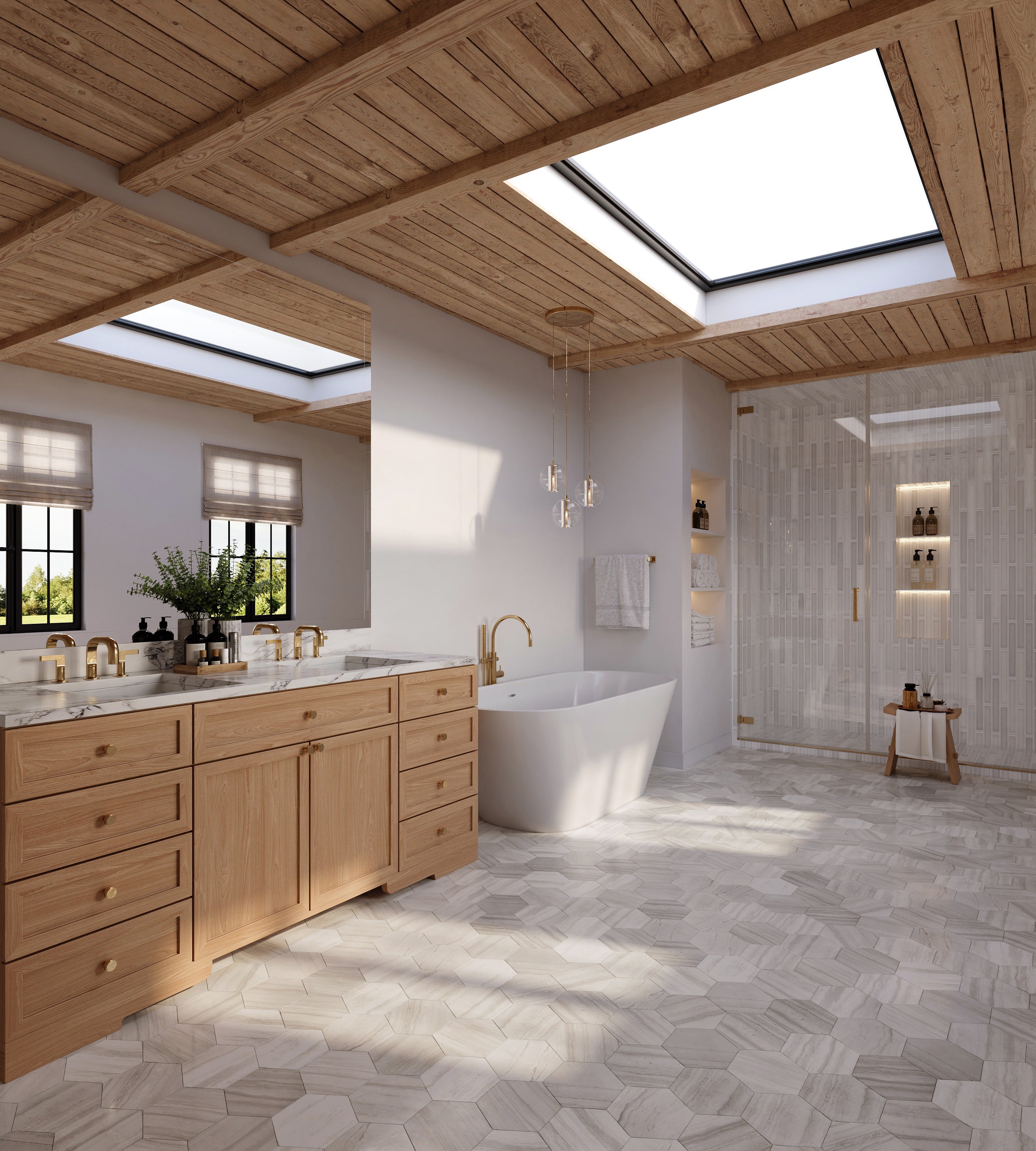 Jedes Detail, jede Oberfläche, jedes Lichtspiel – hier wird ein Bad zum Erlebnis. Unser Rendering fängt die Materialität perfekt ein: die glatten Fliesen, die edlen Armaturen, die harmonische Kombination aus Form und Farbe. Man spürt die hochwertige Ausstattung, sieht die Tiefe der Räume und die Natürlichkeit des Lichts – so, als könnte man jeden Winkel betreten. Fotorealistisch, lebendig und inspirierend, lässt dieses Bad nicht nur Designideen sichtbar werden, sondern macht sie förmlich greifbar.